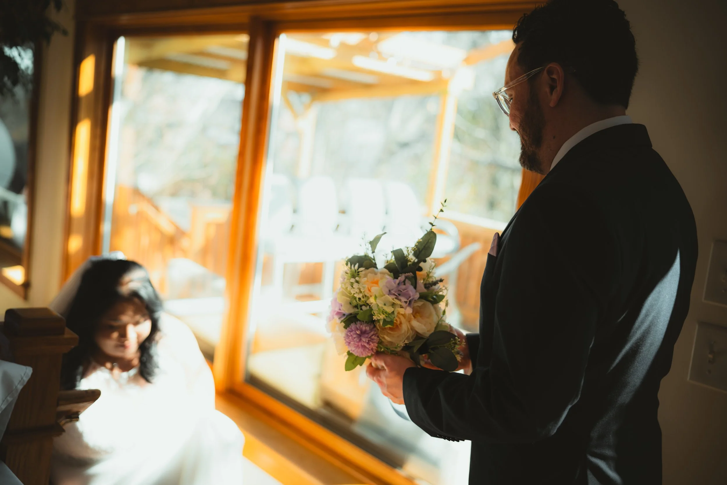 An outdoor “I do” moment that felt like a gift. Set against the natural beauty of the Arlington Treehouse, the ceremony embraced the unexpected—perfect February weather, gentle sunlight, and a setting that felt both intimate and expansive. Surrounded by their closest family and friends, the couple exchanged vows in a space that required little more than their love and the moment itself.